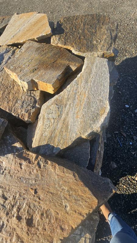 Beautiful brown/grey natural slate flagstone perfect for walkways and patios. It's variation in color makes it great at picking up more of the grey or brown tones in your landscape. Has a beautiful shimmer flake.